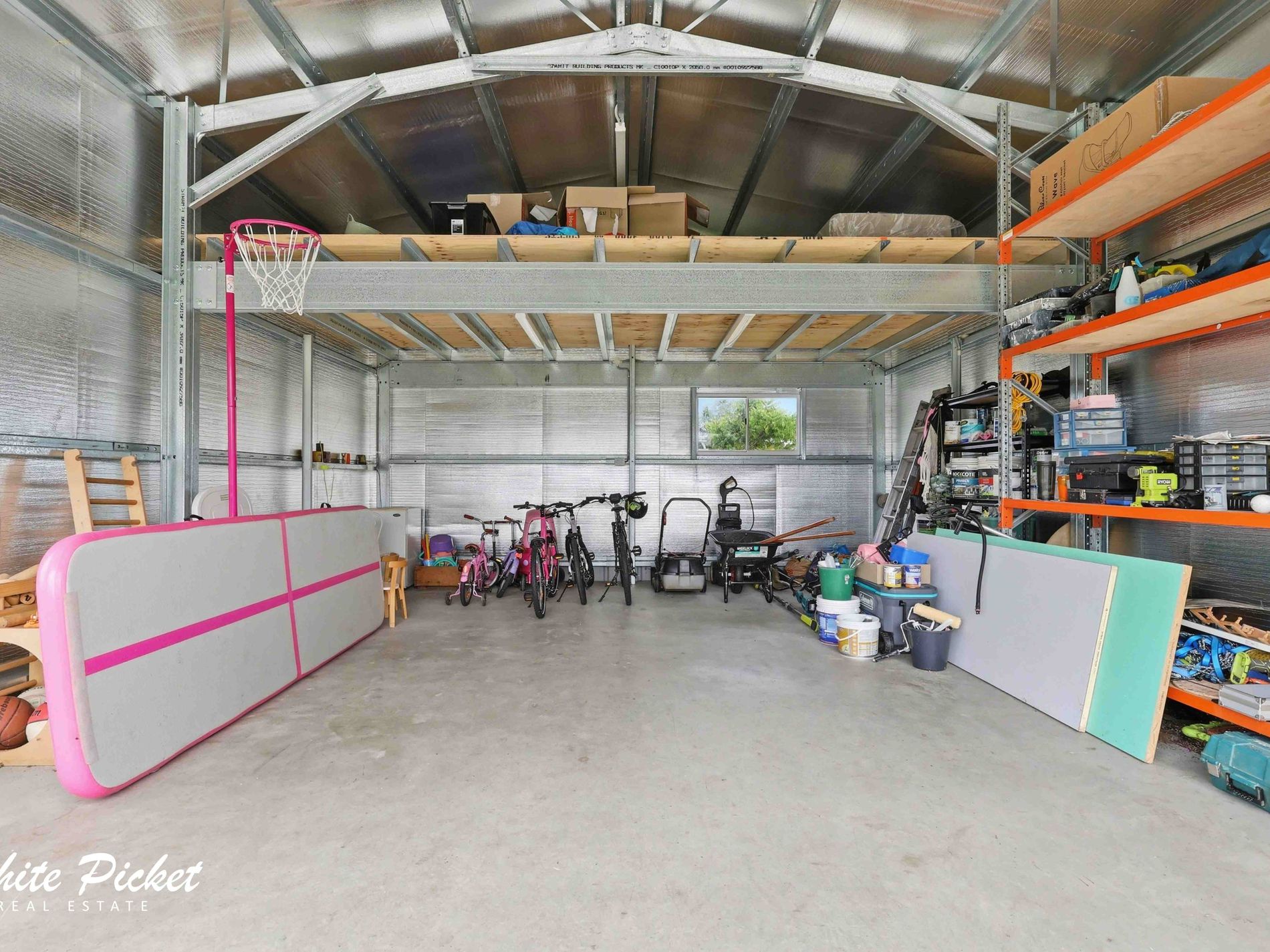 • 6x7m powered shed with insulation and mezzanine floor